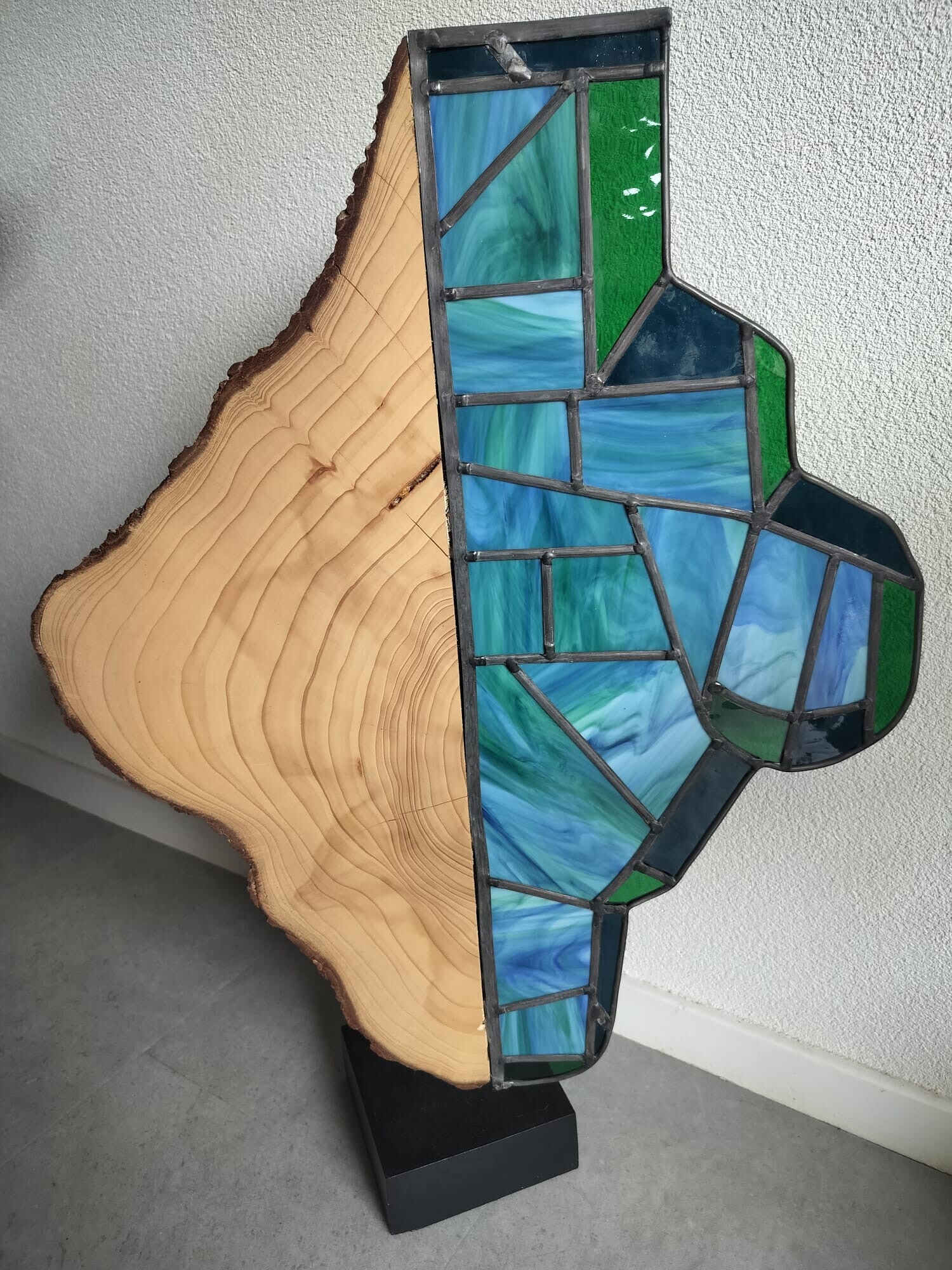 In de lamp zit een ledstrip die het glas in lood en de muur of ruimte achter de lamp verlicht. Hierdoor kan je ook savonds genieten van de warme sfeer van het licht door glas in lood.